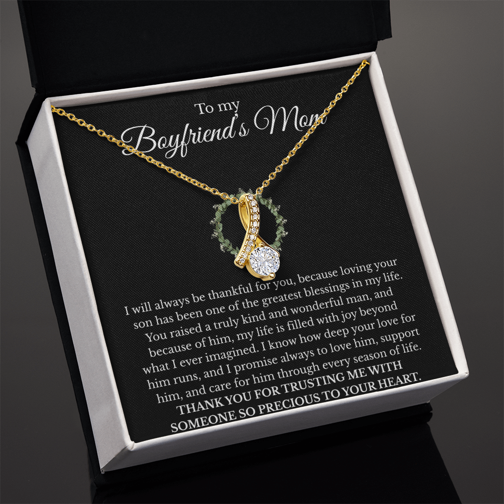 Boyfriend’s Mom Gift Necklace with Message Card – Alluring Beauty Pendant, White or Yellow Gold Finish