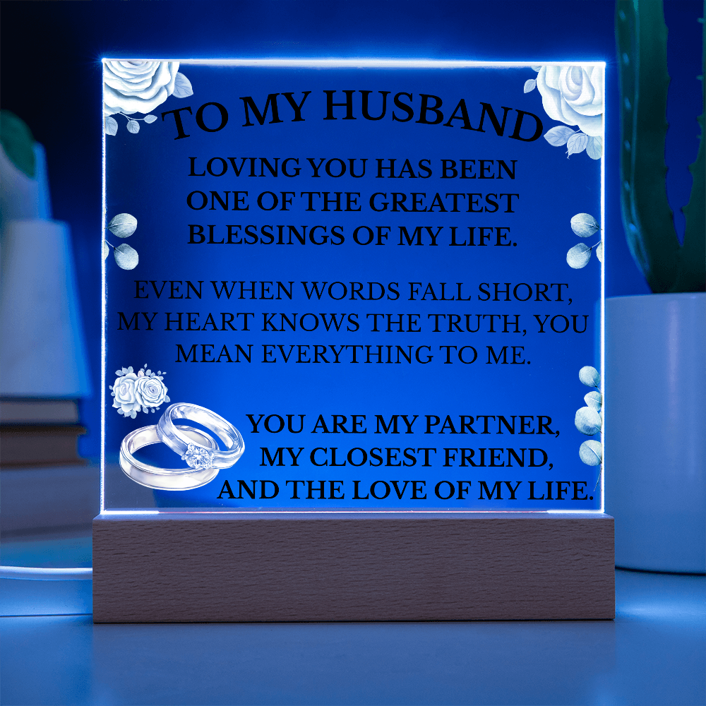 To My Husband Acrylic Plaque with LED Base – Romantic Gift for Husband | Anniversary, Birthday, Wedding Gift for Him