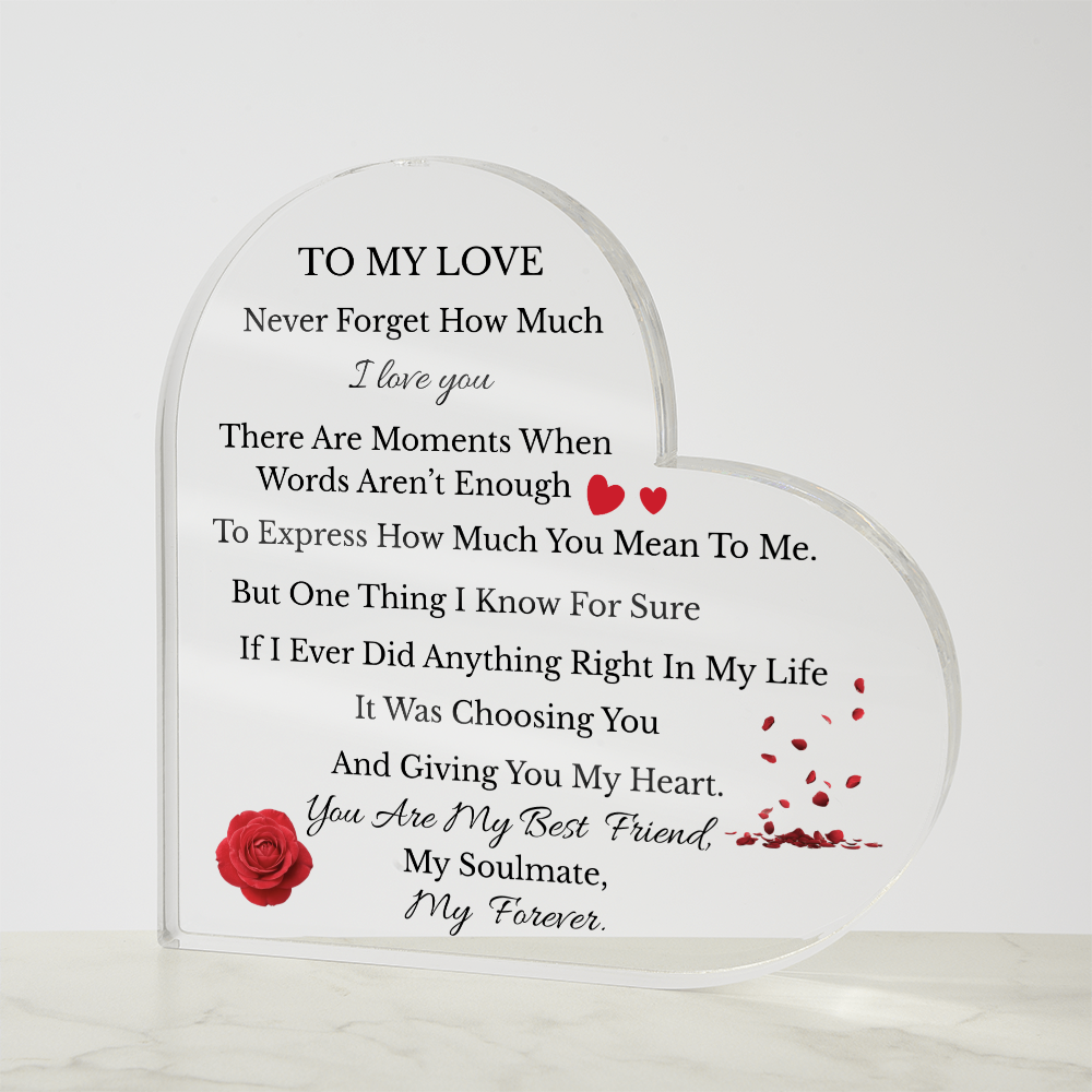 To My Love Heart Acrylic Plaque – Romantic Gift for Him or Her | Anniversary, Valentine’s Day, Soulmate Gift